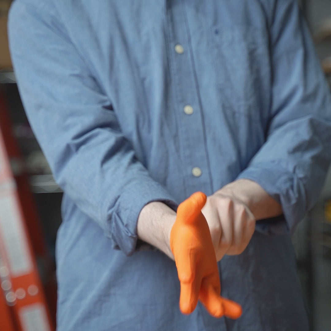 8 Mil Disposable Orange Nitrile Heavy-Duty Gloves, Industrial, Diamond Texture - X-Large