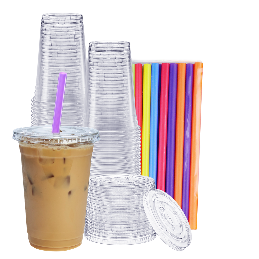 High-quality - Ultra-clear durable PET material crack-resistant plastic cold cups and lids with high-quality plastic straws.