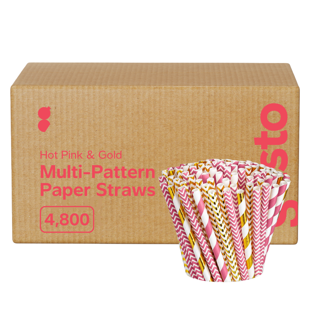 - Comfy Package's quality 7.7-inch long & 6 mm diameter Pink & Gold Multi-pattern Paper Drinking Straws is perfect for birthdays, weddings, bridal showers, baby showers, bachelor parties, engagement parties, graduation celebrations, anniversaries, and more.