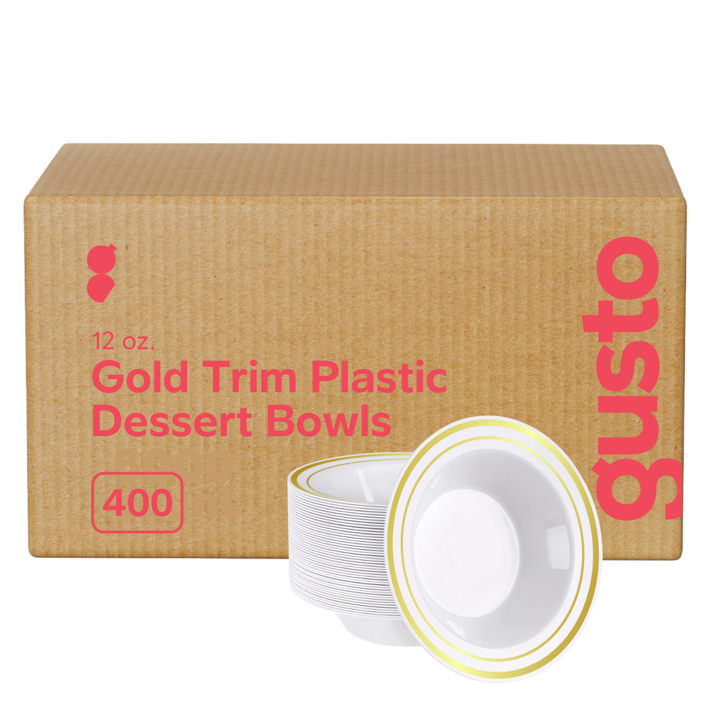 [Case of 400] 12 oz. Premium Dessert Bowls - Gold Trim